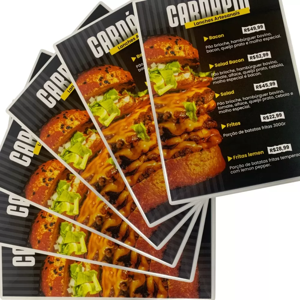 Cardápio plastificado A4