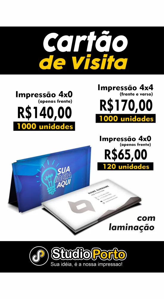 100 unidades (+ R$ 65,00) 4x0 (apenas frente)