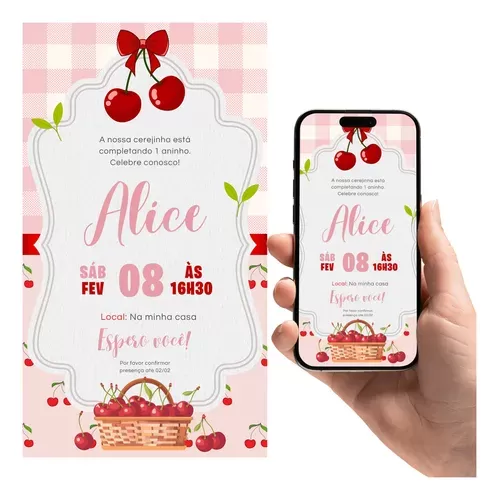 Receba seu convite digital de aniversário personalizado em alta resolução e envie para seus convidados de forma prática pelo WhatsApp ou e-mail.