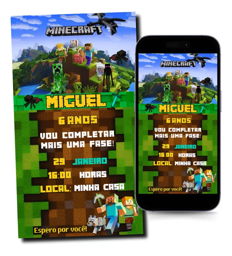 Todos os convites personalizados são entregues em alta resolução, prontos para serem compartilhados via WhatsApp ou e-mail.